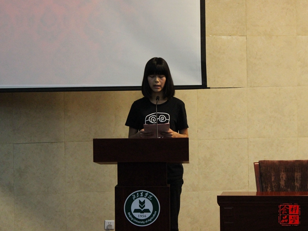 在女子三级跳中以10米41的成绩打破北京农学院维持12年记录的马云娃同学和参加开幕式啦啦操表演的王诺瑶同学分别作为优秀运动员代表和优秀个人代表进行发言,她们谈到自身在平时训练当中的心路历程,并对运动会中的所有参与人员表示肯定。马云娃同学在发言中指出,今天优异成绩的取得和日常的刻苦训练以及老师的悉心指导是分不开的,本次运动会让她更明确了自身的目标,希望在以后的比赛中能够继续创造优异成绩。