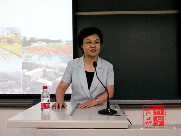 会上,仝其根院长为同学们做报告。仝院长就学院的整体情况从学院发展历史、教学科研团队,科研成果转化,社会服务等方面向同学们进行介绍。几张简短的PPT显示了学院近几年的快速发展和雄厚的师资力量。尽管就业离新生还比较远,但为了让同学们更早树立起大学的奋斗目标,仝院长向大家介绍了学院毕业生的就业情况,食品行业发展现状,“3+1”教学模式等,他向新生提出了五点要求,即适应学习方式的转变、适应生活环境的改变、树立安全意识、处理好能力锻炼与专业学习的关系、利用好大学开放的学习资源。他用一个个发生在身边的事例,增强了同学们的对本专业的自信心。