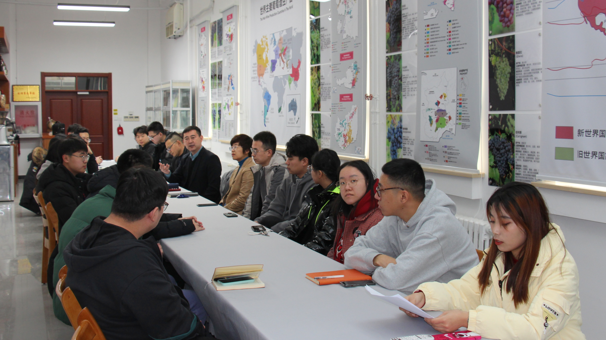 为推进食品学院学风建设,加强师生交流,了解学生的实际需求,帮助学生开阔视野,做好学业规划。1月2日,食品学院师生在品鉴实训室开展了第三期“师生面对面”交流活动。学院党委书记靳晓熙,学生工作负责人闻海洋,酿酒工程本科生党支部书记魏晓峰、辅导员任墨诺出席活动,本次活动由2023级本科生王晓琴主持。