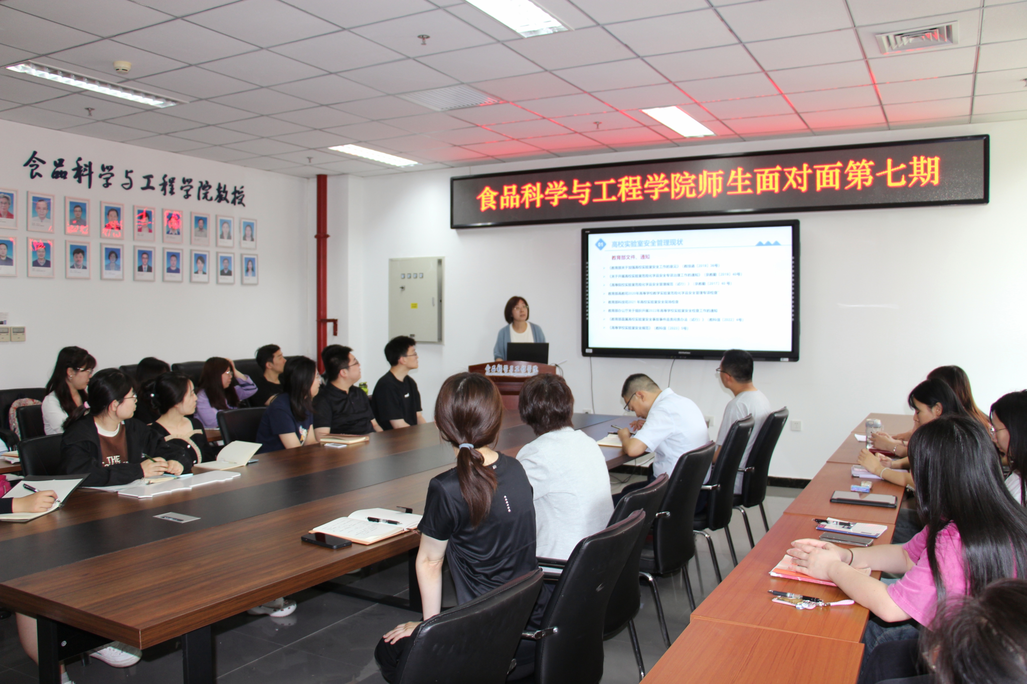 为推进学院学风建设,强化师生安全责任意识,5月9日中午,食品学院师生齐聚食品楼218会议室,开展第7期“师生面对面”交流活动。学院党委书记靳晓熙、学生工作负责人闻海洋,辅导员杨丰瑞、赵静出席活动。