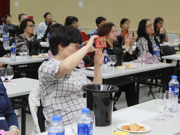 活动开始,李德美老师从葡萄酒的历史和文化入手,逐渐过渡到中国的酒和酒文化,与大家分享了葡萄酒文化和白酒文化的不同。并为大家介绍了挑选和保存葡萄酒的常识。