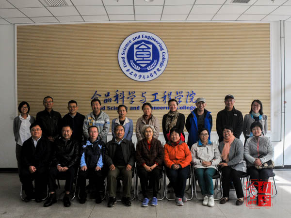 最后,与会校友和老师们在院徽下合影留念。党总支书记党登峰老师带领校友参观了食品楼,深入实验室,向校友展示学院科研、教学的发展成果,共话学院发展未来。