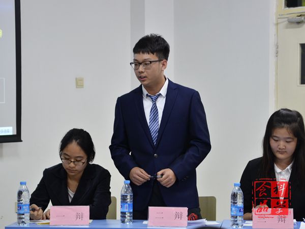 11月2日、3日晚上,食品学院辩论赛决赛进行得如火如荼。赛中,工程一班对战安全一班,安全二班对战包装二班。校学工团委副书记宋子越、校团委宣传部副部长汪俞彤、2015届院学生会学习部部长汤子晨、院优秀辩手李世通担任辩论赛评委。院学生会办公室主任姬钰、科协部部长李晶鑫到场为同学加油。