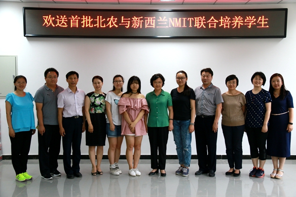 王慧敏校长祝贺我院与新西兰尼尔森·马尔伯勒理工学院的合作取得实质性进展。王校长耐心地叮嘱学生在国外学习各方面的注意事项,希望三位同学努力学习,预祝她们圆满完成学业。座谈会在温馨而愉快的氛围中结束,会后全体与会人员合影留念。