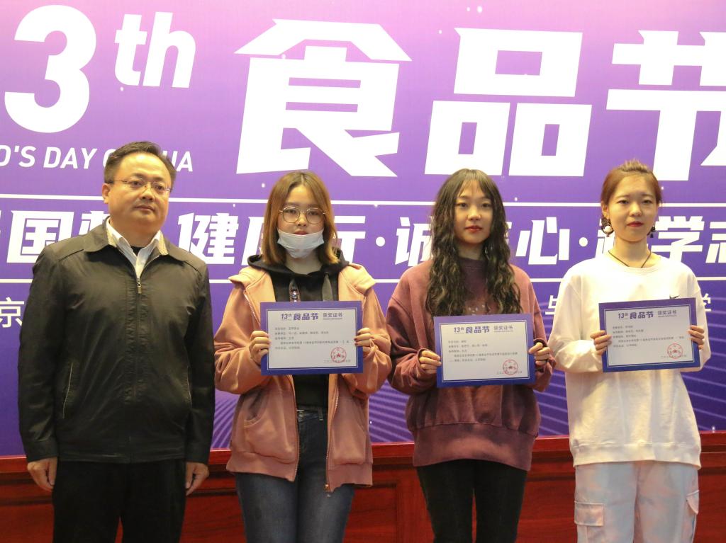 首先,由主持人白天琪代表学院揭晓了北京农学院第13届食品节创新创意食品竞赛、食品安全检测竞赛和包装装潢与造型设计竞赛的各个奖项。与会学院领导马挺军、丁轲、王雪、党登峰依次为优秀奖、三等奖、二等奖、一等奖获奖代表颁发了获奖证书。