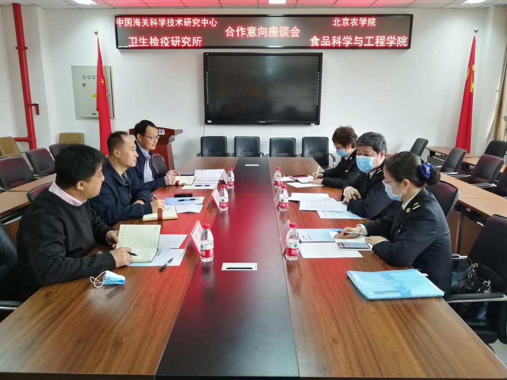 会上张红星院长介绍学院基本情况,副院长马挺军、丁轲分别介绍了学院科研、研究生教育和本科生教育情况。周健主任介绍了中国海关科学技术研究中心的定位、职责以及卫生检疫研究所的工作范围等情况。之后双方在科研项目合作、成果转化、人才培养、人员培训等方面开展深入而广泛地交流。双方都表示,发挥各自优势,实现优势互补,希望对现有项目进行梳理,找准项目对接点,积极搭建科研平台,开展长期合作,走上合作共赢之路。