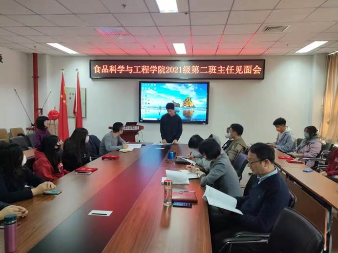 为贯彻“三全育人”的宗旨,落实学校的第二班主任制度,开云手机站登录入口于11月12日中午12:30,在食品楼218会议室召开了第二班主任见面会。见面会由辅导员赵静老师主持,2021级5个新生班班长、团支部书记和班主任、第二班主任参会。