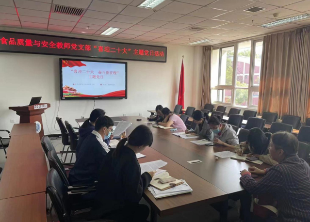 食品质量与安全教师党支部教师党员们围绕如何“坚持立德树人根本任务,推动学院高质量发展”“提高学院管理、教学和科研水平”“提升科技转化,服务乡村振兴”等方面展开了热烈讨论。党支部书记金君华讲道:“建功新时代需要每名党员教师的积极参与,只有胸怀‘国之大者’,勇于担负时代使命,才能更好地发挥党支部的战斗堡垒作用和党员的先锋模范作用”。