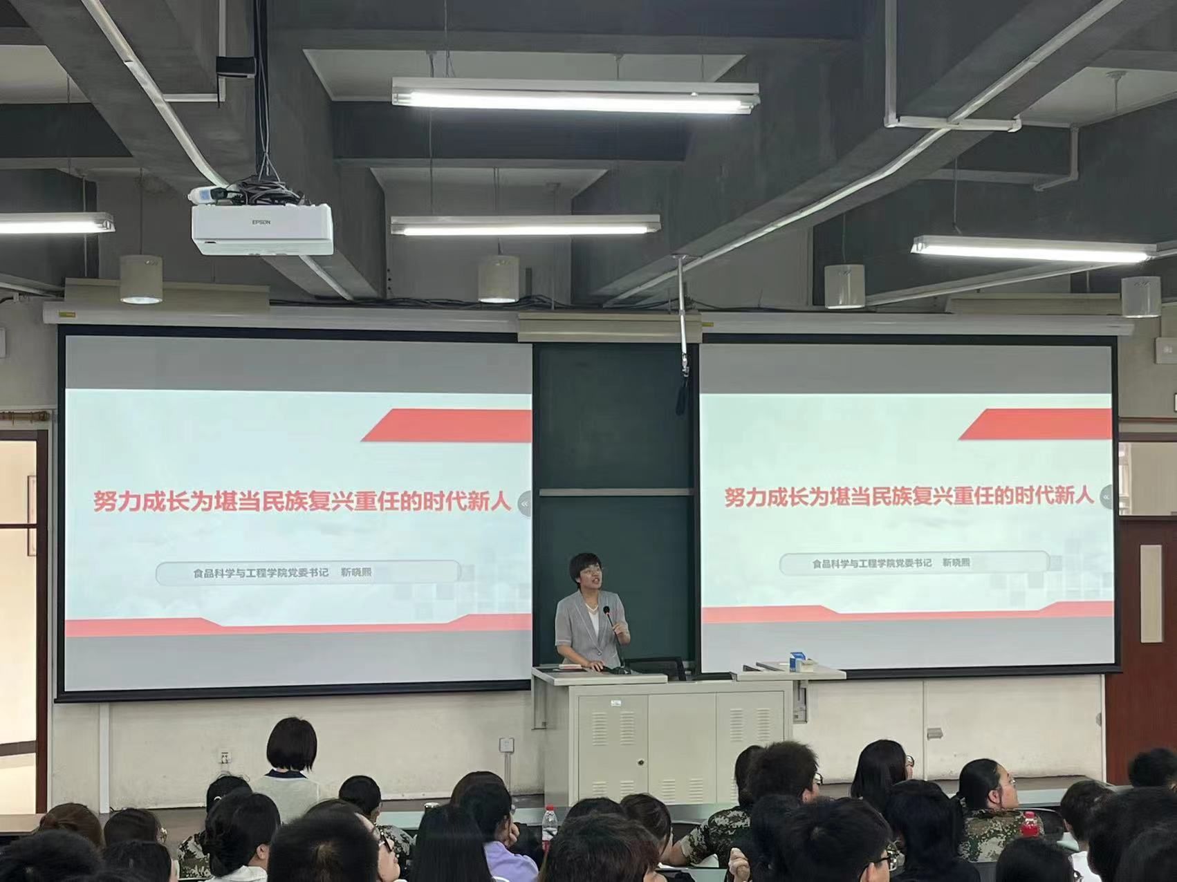 学院党委书记靳晓熙以“努力成长为堪当民族复兴重任的时代新人”为题,从理想和信念、求得真学问和实践长真才三个方面讲授了新时代大学生应有的责任和担当。她结合青年实际,引导新生坚定理想信念,厚植爱国情怀;希望同学们在大学生活中处理好“思维与知识、通识与专业、有用和无用”的关系,既向书本学、也向实践学,全面综合发展;号召大家以主人翁的责任,争做文明校园的建设者,一起携手共建文明校园。