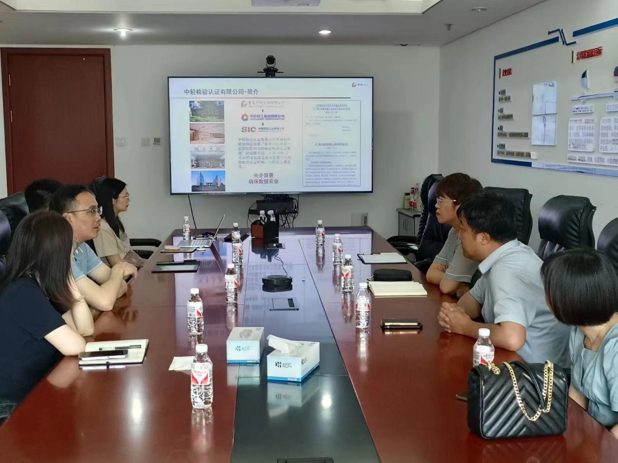 6月6日,开云手机站登录入口领导班子走访中轻检验认证有限公司,围绕强化校企合作,加强人才培养、学生实习实践等方面工作座谈交流。中轻检验认证有限公司副总经理王文琪、人力资源部总经理刘亚玮、部门负责人刘秀,学院党委书记靳晓熙、副院长丁轲、学生工作负责人闻海洋、食品质量与安全系副主任刘慧君参加座谈会。