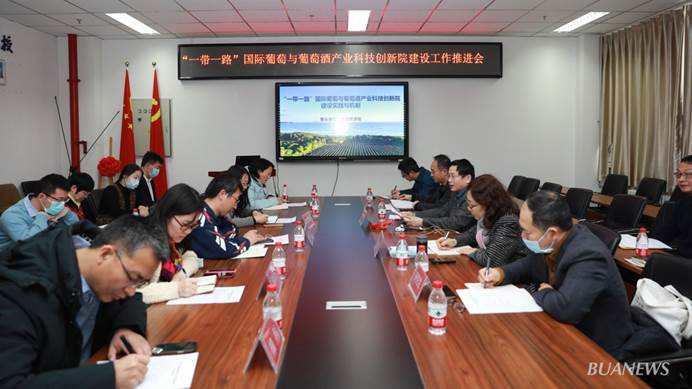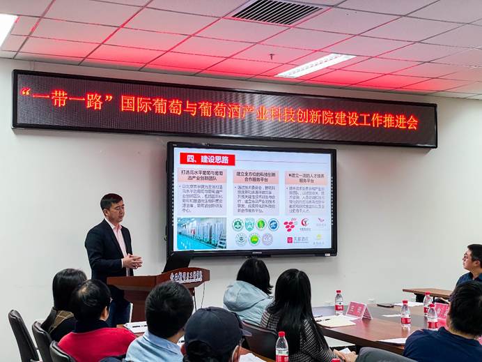 1月21日下午,“一带一路”国际葡萄与葡萄酒产业科技创新院(下简称创新院)建设工作推进会在食品楼218会议室顺利召开。北京农学院党委常委、副院长段留生,党委宣传部常务副部长、人事处处长刘铁军,科学技术处处长马晓燕、副处长谢远红,研究生处处长何忠伟,国际合作与交流处副处长薛飞燕,生物与资源环境学院副院长尚巧霞、植物科学技术学院副院长张杰、教务处教学研究科科长郑冬梅及开云手机站登录入口(下简称食品学院)领导班子、酿酒工程系系主任李德美出席会议,酿酒工程系全体教师列席会议。推进会由科技处副处长谢远红主持。