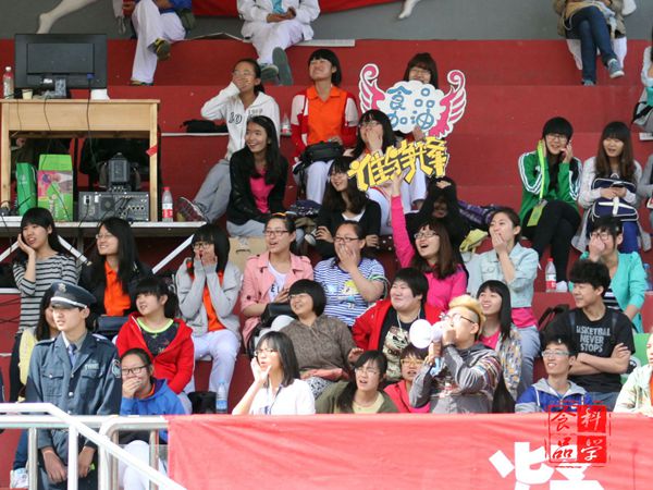 看台上,食品学院加油声不绝于耳。比赛时观众们紧张激动的心情简直如同站在比赛场上参加比赛的人是自己一样。“看!超过一个,又超过一个。”坐在前排的观众不由自主地喊起来,观众们激动得起立呐喊,加油鼓劲,每个人都眉眼带笑,嘴角上扬。运动员取得名次之后,他们开心得好像是自己得到很大的成功一样。即使是为赛场上失意的运动员,观众们也毫不吝惜自己的掌声与鼓励,微笑着安慰他们:“没关系,重在参与,以后也还有机会。”食品学院学生马佳欣说:“运动员们都努力拼搏,值得我们真心为他们喝彩。也唯有呐喊才能表达出我的感情,真正体现观众的价值。”