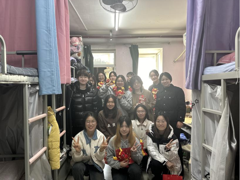 官凌霄、赵静来到7号楼女生宿舍,详细了解了学生们的学习和生活情况。同学们畅所欲言,胡文清同学分享了自己参与返乡志愿的的经历与收获,刘思晴同学向大家分享了假期实习工作的体验。