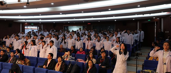 酿酒工程专业教师代表庞晓娜带领食品学院新生入行宣誓。