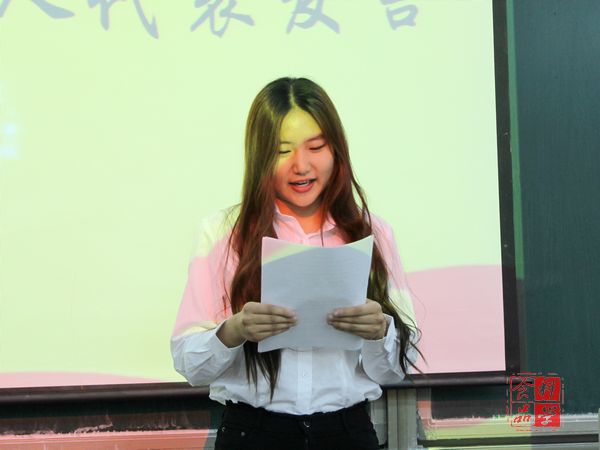 学生会副主席夏绍琪首先做了一年的学生会工作总结。她表示,这一年院学生会成功组织了不少活动,这其中的努力与付出,离不开每位领导、老师的指导,离不开学生会的每一位成员。她说到“认真和坚持对每一位学生会干部都是优秀的品质,最终的胜利者一定是持之以恒且朴实无华的。”