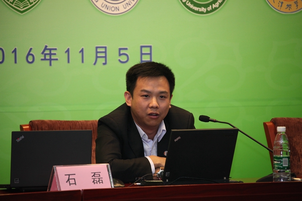 第三个报告是来自食品学院2002级优秀毕业生石磊的创业感想。石磊学长毕业之后在多家食品企业从事营销和贸易工作,2012年创办了上海正在国际贸易有限公司,公司目前已成为国内前十的牛肉销售贸易公司。毕业后,学长发现国内养殖牛的成本过高,生产资源受限,从而使得国内牛肉销售价格过高,而未来,牛肉将超过其他肉类成为重要的需求和趋势,因此断定国内牛肉市场需求潜力巨大,抓住了创业机会。最后,学长启示我们“选择大于努力,态度决定一切”,并对学院的发展表达了美好祝福!