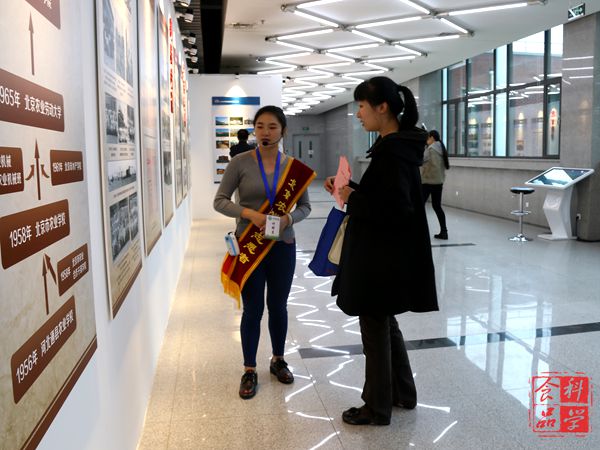 在“优秀科研团体”、“创新团体”展板前校友们寻觅熟悉的身影,讶异着被翻出的那些年的老照片,那些属于他们的荣誉。惊觉当年的老师或同届生如今成为众多行业的人才、名师时,他们言语中溢出满满的骄傲。看到现今学校的留学生工作时,他们不禁感叹如今学校教育的飞速发展。当他们走到“女子国旗班”、“食品节”展板前,都不住地称赞。整个过程中,他们频频点头,面对院校的发展,“了不起”似乎已经不能诠释他们的内心,激动的心情久久难以平复。