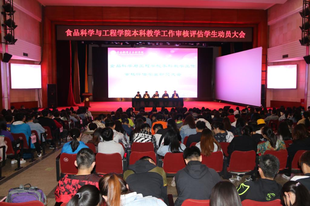 为进一步将学校审核评估工作落小落细落实,开云手机站登录入口(以下简称食品学院)于2019年4月15日,在礼堂召开了本科教学工作审核评估动员大会。食品学院全体领导班子、辅导员以及16、17、18级各班班主任、同学参加了会议。会议由食品学院党总支副书记王雪老师主持。