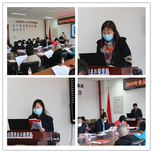 2020年4月21日上午,食品学院在食品楼218会议室召开了2019年度学院基层党支部书记述职考核会。园林学院党总支书记王万山、计算机与信息工程学院党总支书记韩宝平、后勤基建党总支书记张秋芝、继续教育学院直属党支部书记蒋林树应邀出席会议,食品学院党总支委员党登峰、张红星、马挺军、丁轲、王雪参加会议、各党支部书记以及师生代表出席了此次会议。会议由食品学院党总支副书记王雪主持。