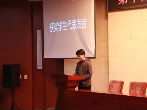 激动人心的颁奖环节后,2018级酿酒工程专业学生王昊天作为获奖代表发言。他向大家回顾了团队参加食品节的故事,讲述了期间的挫折和努力,分享了成功的喜悦,感谢学校和学院搭建的平台,感谢老师的倾心指导。他代表参赛同学说,食品节中同学们展示的创意、付出的努力、获得的成长,为食品节赋予了新的意义。