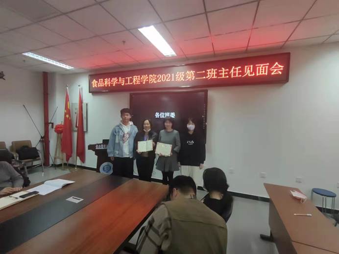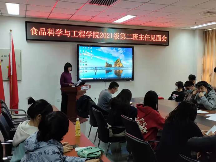 为贯彻“三全育人”的宗旨,落实学校的第二班主任制度,开云手机站登录入口于11月12日中午12:30,在食品楼218会议室召开了第二班主任见面会。见面会由辅导员赵静老师主持,2021级5个新生班班长、团支部书记和班主任、第二班主任参会。
