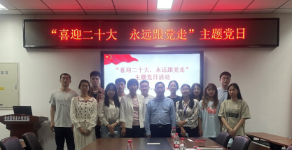 主题党日活动中,学院党总支为在9月入党的学生党员集体庆祝政治生日。段留生和靳晓熙共同为学生党员发放政治生日贺卡。