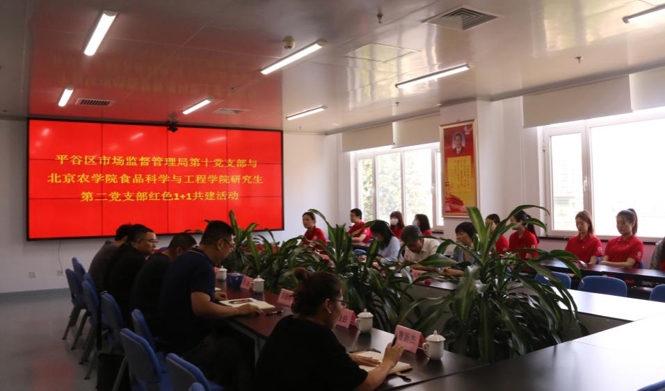 座谈会上,范保瑞介绍了平谷区市场监督管理局检验检测中心的发展历程、主要职能,重点介绍了第十党支部在党建引领、社会服务等方面开展的工作。罗蕊简要介绍了北京农学院和食品学院的发展概况,重点介绍了学院研究生第二党支部的现况。在进一步加深了解的基础上,双方就红色“1+1”活动内容进行了热烈深入的讨论,达成了继续深入开展活动的共识。