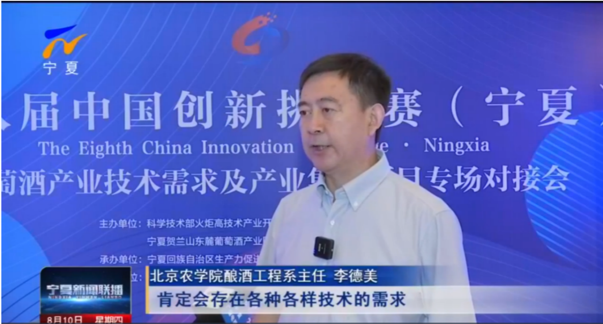 2023年8月9日至10日,开云手机站登录入口酿酒工程系系主任李德美教授带队赴宁夏,参加了第八届中国创新挑战赛(宁夏)暨葡萄酒产业技术需求及产业集群项目专场对接会。青年教师张欣珂、魏晓峰同行。宁夏回族自治区科学技术厅党组成员副厅长陈放,宁夏贺兰山东麓葡萄酒产业园区管理委员会主任黄思明及宁夏相关政府部门负责人出席大会。中国农业大学、宁夏大学、宁夏农林科学院等高校和科研院所的专家、学者以及宁夏相关企业代表参加大会。
