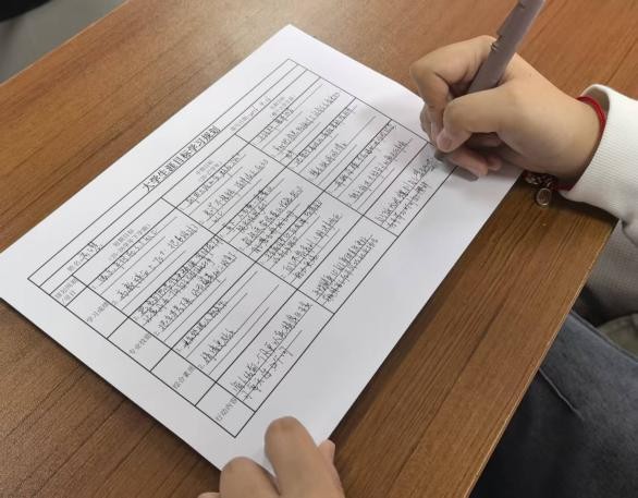 全体同学围绕短期、中期和长期目标,认真填写学业规划表,并现场分享个人发展愿景,将理想目标转化为具体行动路径。从“本学期通过英语四级”到“参与一次企业实习实训”,每位同学的目标都对应了明确的时间节点和执行步骤。分享过程中,有同学坦言:“写下来之后,感觉目标没那么远了。”