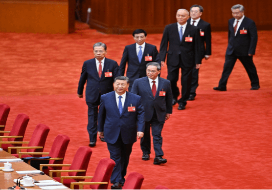 中国共产党第二十届中央委员会第三次全体会议,于2024年7月15日至18日在北京举行。这是习近平、李强、赵乐际、王沪宁、蔡奇、丁薛祥、李希等步入会场。新华社记者 岳月伟 摄